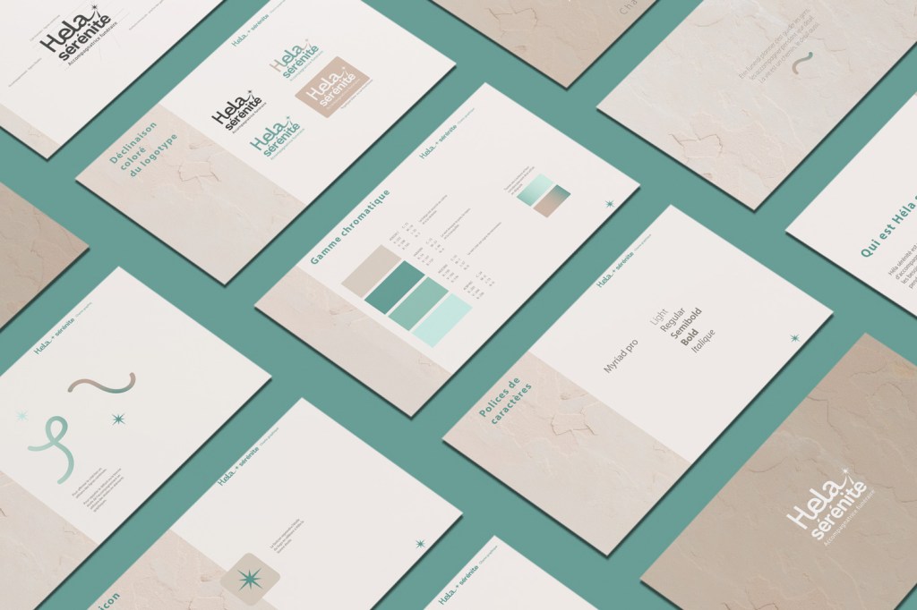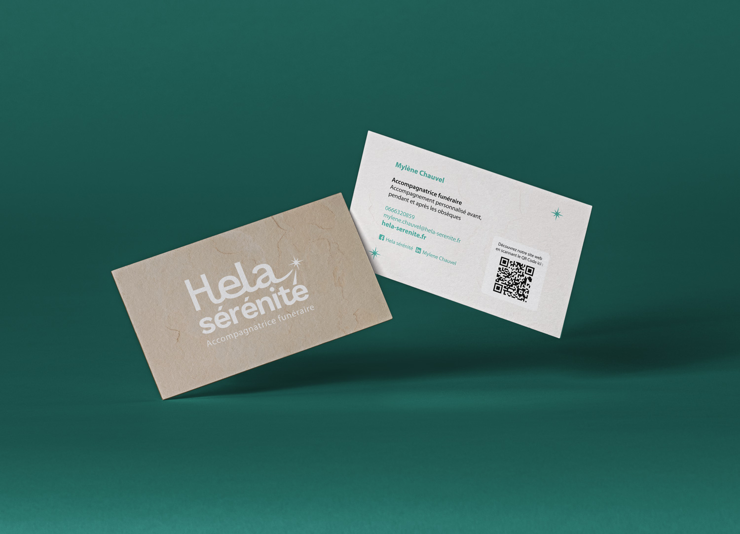 L’identité visuelle d’Hela sérénité s’articule autour d’un langage graphique évocateur, empreint de sérénité, de lien et de renouveau. Etymologiquement : Hel était la déesse nordique de la mort, qui veille avec bienveillance sur le passage entre les mondes.
